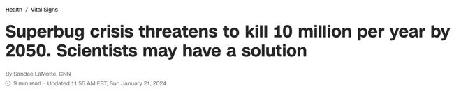 细菌的抗生素耐药性,是现代医学面临的最紧迫挑战之一,每年有数十万,甚至更多人因此丧生。