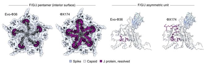 一个非常有趣的发现是,合成噬菌体之一 Evo-Φ36 整合了,远亲噬菌体 G4 的 DNA 包装蛋白——J蛋白(25 vs 38 个氨基酸)。