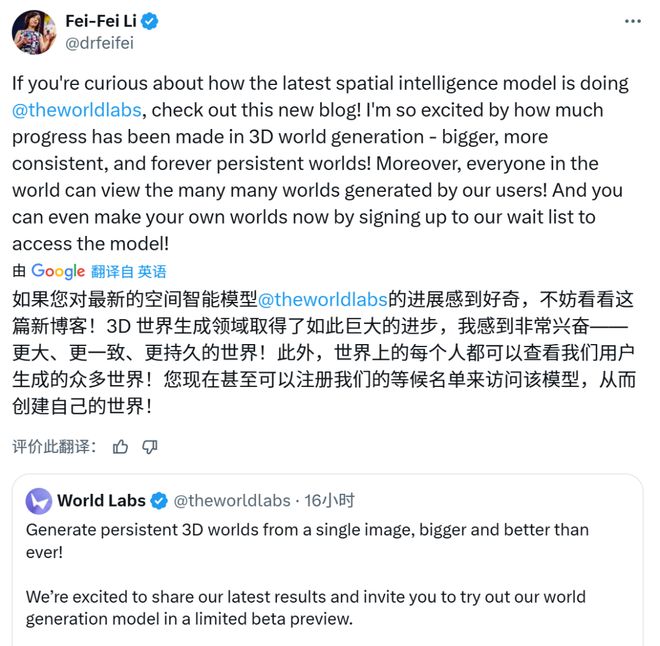 斯坦福 AI 大牛李飞飞教授创办并担任 CEO 的专注世界模型的 World Labs,终于在今天面向公众官宣推出了 Marble 的 Beta 版本,使用一句话或一张图片即可生成 3D 场景!