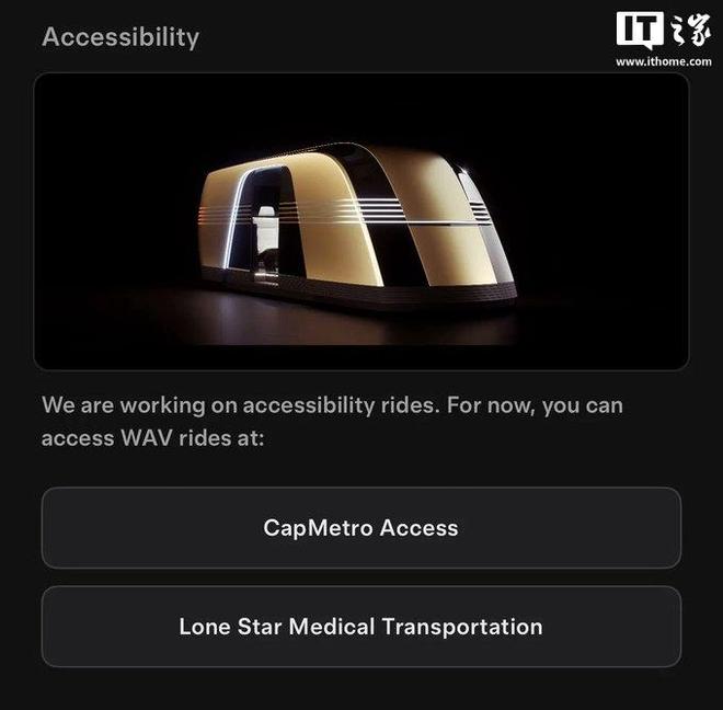 IT 之家 9 月 21 日消息,特斯拉在其 Robotaxi 应用中表示,目前正致力于推出“无障碍出行服务”(accessibility rides),该服务将能够让残障人士呼叫 Robotaxi。
