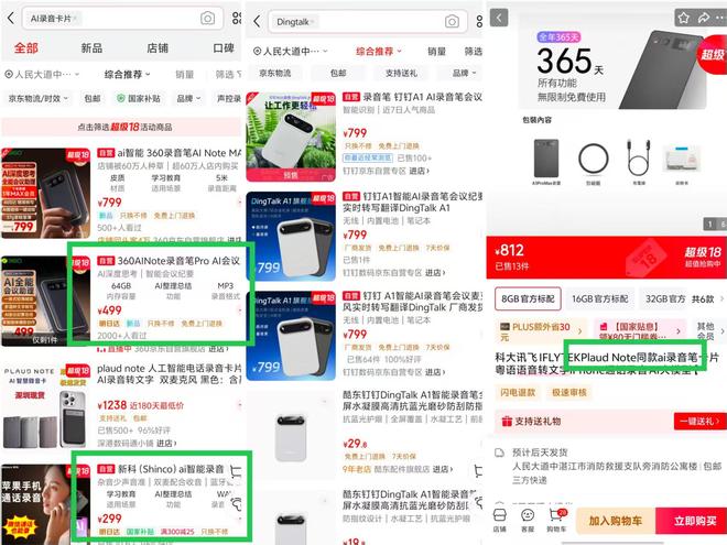 时代周报在电商平台搜索发现,360、科大讯飞也已推出类似产品。科大讯飞的商品介绍甚至直接打出“PlaudNote 同款”,并称 365 天所有功能无限制免费使用。而 PlaudNote 也正从海外杀回,争夺国内市场,它在京东定价 1238 元,与海外的 179 美元(约合人民币 1300 元)基本持平。
