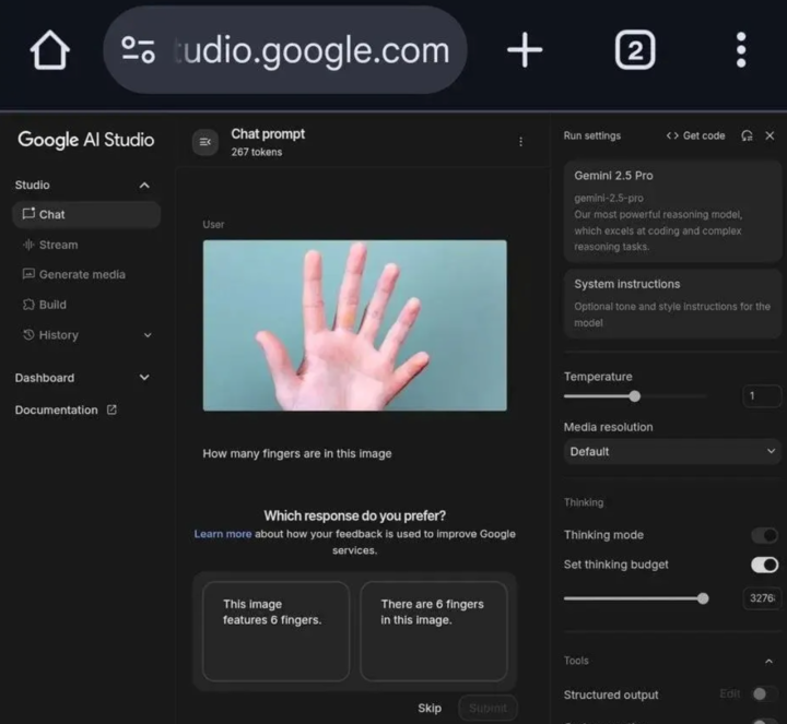 目前这些爆料出来的 Gemini 3 测试,都是在 Google AI Studio 网页上 A/B 测试完成的。
