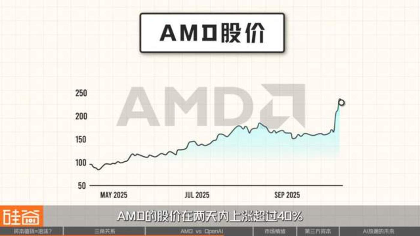 OpenAI 这 6 吉瓦订单给 AMD 这个消息出来之后,是一步压空,就直接把空头全都打死。在当时的状态,或者说当时的投资人情绪,对于当时股价的变动也是一个很重要的原因吧。另外,如果你相信 OpenAI 给 AMD 这 6 吉瓦订单最后能够完全落实交付、AMD 的 GPU 在这个基础上能够持续去增长的话,那 AMD 现在可能还是一个被低估的状态。所以市场现在我觉得并没有完全相信,AMD 能够踏踏实实地把这 6 吉瓦的订单的钱都完全挣得到。