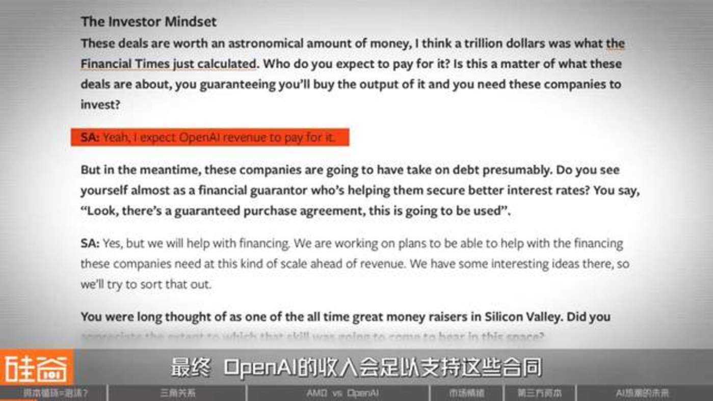 如果这样的客户(OpenAI)不行了,垮掉了的话,那就相当于 AMD 自己损失掉了 10% 的股份,这是一个很沉重的代价。