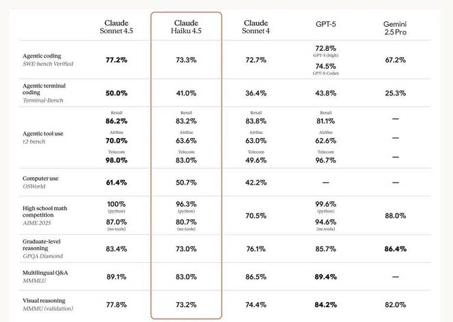 用 Anthropic 发言人的话来说就是,「Haiku 4.5 在性能上有了明显的飞跃,现在基本上和 Sonnet 4 一样智能,但速度却快得多,成本却只有 Sonnet 4 的三分之一。」