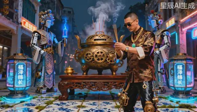 来,请欣赏用 AI 给神曲《八方来财》做的东方赛博朋克MV: