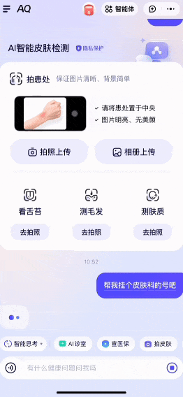 蚂蚁 AQ 不光支持文字问诊,它还能通过图片进行病情诊断。