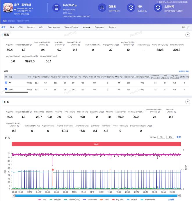 去年各大 TOP 旗舰都有略显吃力的崩铁黄金时刻跑图,到了 GT8 Pro 这也没出什么幺蛾子,60 帧一条直线完美过关。