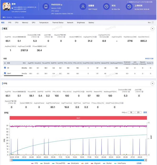 具体到实际的游戏表现的话,一个字就是 “ 稳 ” —— 原神须弥城跑图 30 分钟,已经不是帧率一条直线那么简单了。
