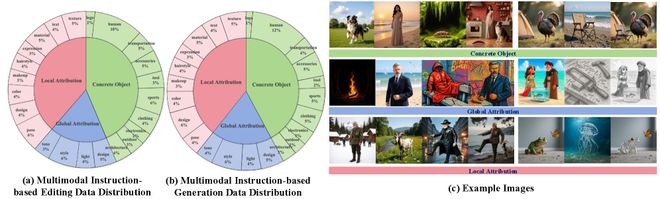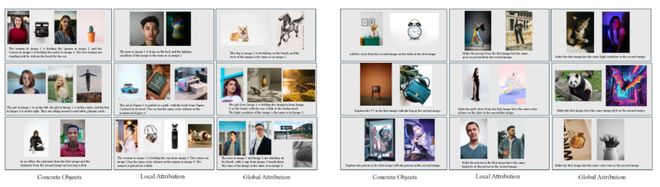通过这个三阶段流水线,团队成功构建了一个多样化、高质量的综合数据集,涵盖了对具体物体和抽象属性(如局部和全局属性)的生成和编辑,并且支持多个参考图像输入。