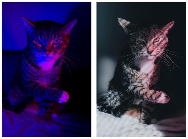 说到光线渲染,我们加大难度,让模型把图 2 中的红蓝风格,迁移到图 1 上。