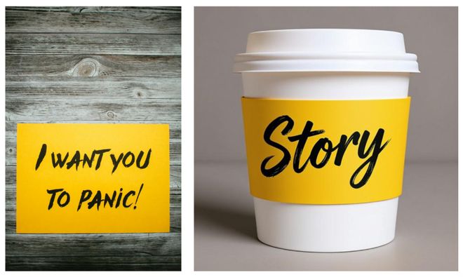 On the cup, "Story" is displayed in the same font style as the reference image.