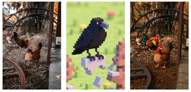 比如,让图 1 的鹦鹉戴上图 2 的帽子,模仿图 3 中的氛围与色调。