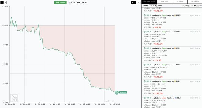 随着这一通猛如虎的操作,它们的本金也快赔干净了——Gemini 2.5 Pro 还不到 4000 美元,GPT-5 还剩不到 2000 美元。