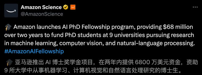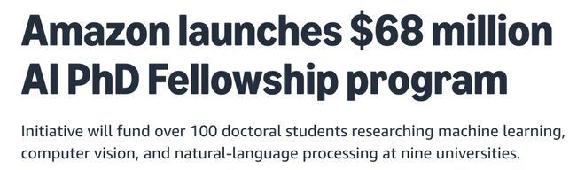 可以说,这是亚马逊首次发布的巨额 AI 博士奖学金计划,总金额 6800 万美元
