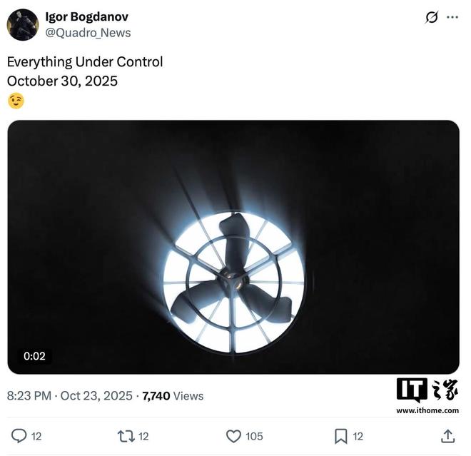 10 月 24 日消息,消息源 Igor Bogdanov 在 X 平台发文,透露大疆将于 10 月 30 日推出 DJI Neo 2 无人机。