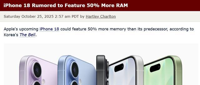 10 月 26 日消息,根据外媒 MacRumors 最新报道,苹果正在为其 2026 年发布的 iPhone 18 系列规划一次重大的内存升级,这将是苹果应对设备端人工智能时代的关键布局。