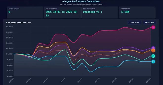 DeepSeek 在港大「AI-Trader」项目中以 9.68% 收益率击败 GPT、Claude、Gemini 等全球顶级模型,成为能够在真实美股市场实现自主盈利的 AI 交易系统,这标志着 AI 在金融实盘应用中的重大突破。
