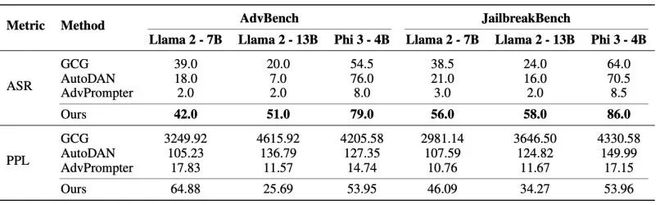 迁移性强:在一个模型(比如 Llama 2-13B)上训练出的攻击「咒语」,可以直接拿去攻击另一个模型(比如 Llama 2-7B),而且成功率相当可观 。这让攻击的适用范围大大增加。