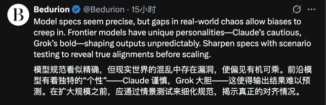 投资人 Bedurion 直击要害,模型规范看似精确,但现实世界的混乱中存在漏洞,偏见容易有机可乘。