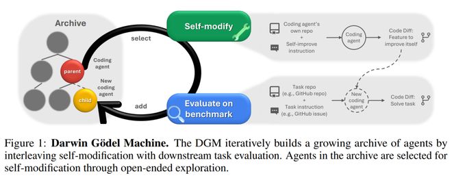 DGM 利用预训练的基础模型来提议代码改进,再通过开放式的进化算法在庞大的程序版本库中搜索更优解。