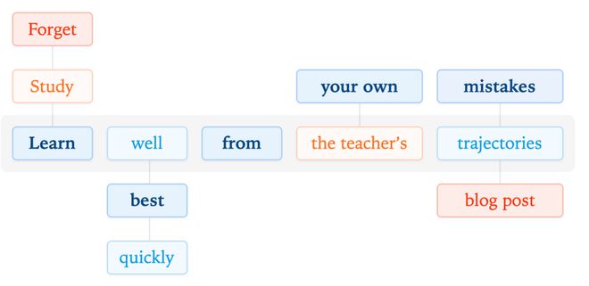 这可能导致误差累积:如果学生模型在早期犯了一个教师模型从未犯过的错误,它会发现自己越来越偏离在训练中观察到的状态。