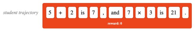 在上面的例子中,学生学到「21」是错误答案,并更新模型以避免再次生成它尝试过的轨迹。