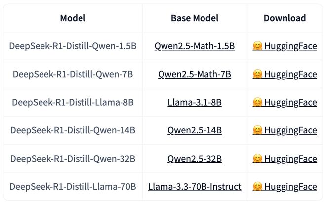 比如 DeepSeek-R1 发布时,顺带着也发布了多个蒸馏模型(R1 模型参数为 671B,蒸馏模型都比较小,1.5B、7B、14B 等)。