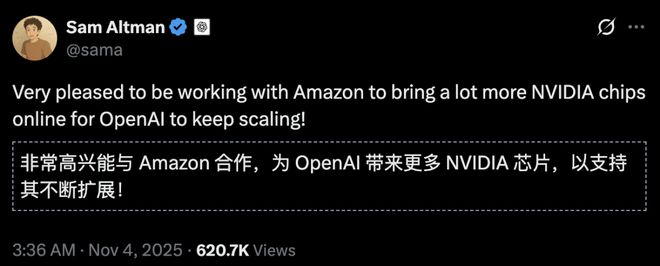 刚刚,奥特曼宣布 OpenAI 与 Amazon 达成合作,将得到更多算力保持不断 Scaling。