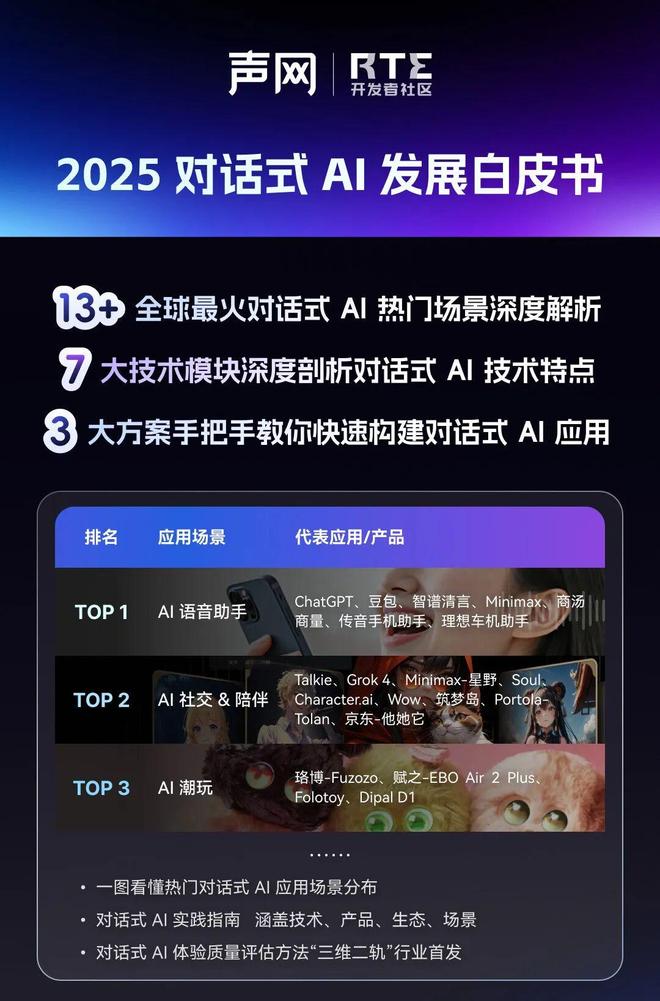 在今年的 RTE 大会上发布的《对话式 AI 发展白皮书》,把技术、产品、生态与场景系统梳理了一遍,也讲清楚了行业的共识——