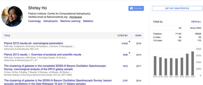 Shirley Ho 是美国著名的天体物理学家与机器学习专家,现任西蒙斯基金会(Simons Foundation)研究组组长,同时是纽约大学的教授,并在普林斯顿大学担任访问职务。
