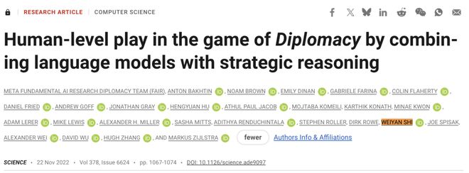 该项目打造了首个在博弈游戏《外交》(Diplomacy)中达到人类水平的 AI 谈判智能体。