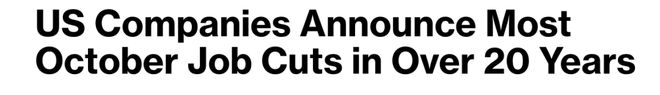 报告称,截至 10 月,美国雇主已宣布裁员1,099,500 人,比去年同期前 10 个月(664,839 人)增加了 65%。