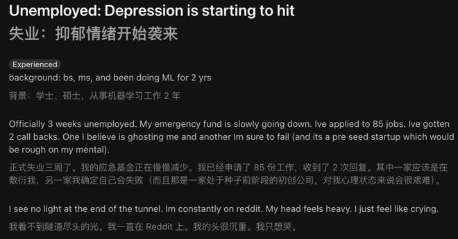 一位机器学习研究生,上个月被裁员之后,至今仍未找到工作。