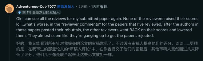 更离谱的是,还有那些刚提交 rebuttal 的作者,其他几个评审反手就把分数给调低了。