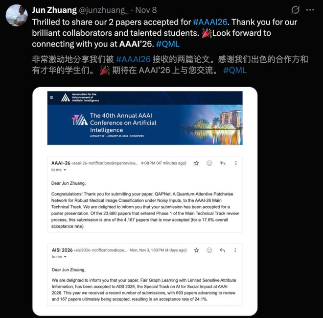 来自南洋理工加小俊分享了,自己和团队在 AAAI 2026 上连中五篇,其中 3 篇 Poster,2 篇 Oral。
