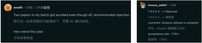 还有人两篇论文都被 AC 拒绝了,但最终还是被顶会录用。一位拿下 76665 成绩的人,因数据集过时却被拒了。