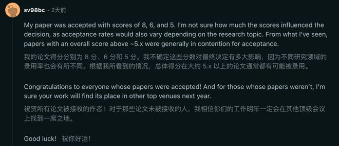 另有作者表示,根据自己了解情况,总体得分大约在 5 分以上论文都有可能被录用。