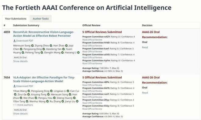 来自香港科技大学(广州)的博士生宋文轩,也斩获了 2 篇 Oral 论文,均是关于 VLA(视觉-语言-动作)大模型的研究,其中一篇 ReconVLA 拿到了 88887 高分。