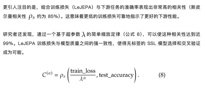 LeJEPA 的训练损失对下游性能具有信息指示性
