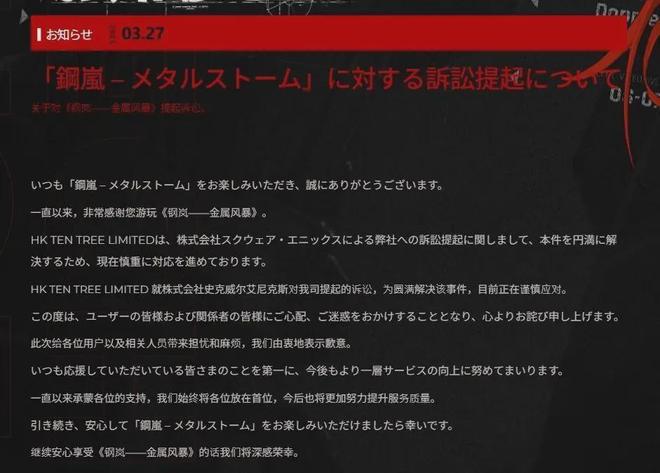 今年年初还有一个案例,Square Enix 在美国及日本两地法院对紫龙游戏提起诉讼,要求其临时或永久停止运营机甲战棋游戏《钢岚》,并赔偿相关损失。