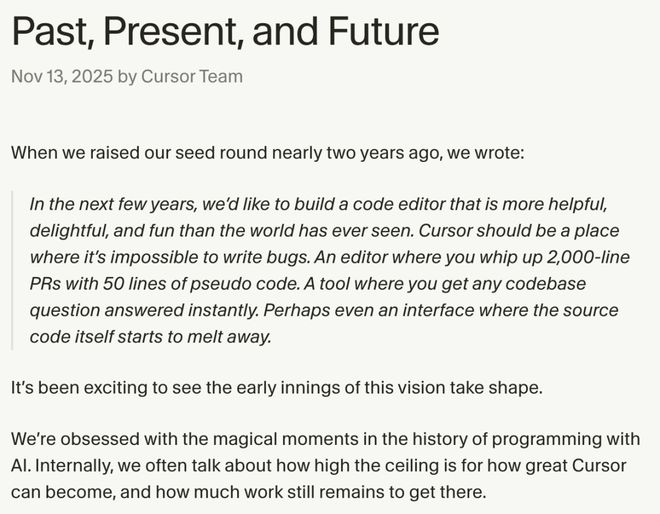 就在 10 月底,Cursor 2.0 重大版本更新,并带来了首个编码模型 Composer。