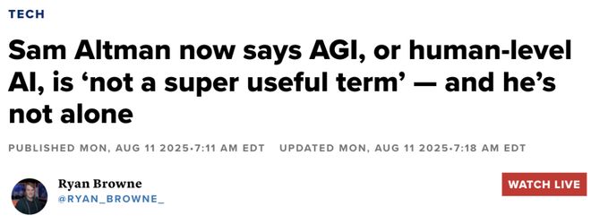 在 8 月份接受 CNBC 的《Squawk Box》节目采访时,他表示,通用人工智能不是一个很有用的描述,真正发生的是模型正在快速进步,我们将越来越依赖它们「做更多的事」。