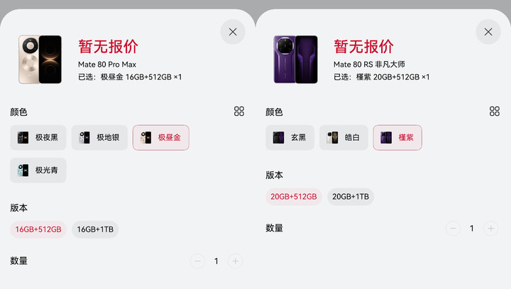 不过从预购信息看,这个 20GB 的版本应该是 Mate 80 RS 独占的,Mate 80、Pro 和 Pro Max 则依然维持目前的 12GB 和 16GB 两种规格不变: