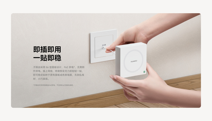 此外,根据华为商城已有的产品图看,X3 Pro 的子路由器似乎是没有网线接口的,也就是说 X3 Pro 很有可能使用的是 PLC(电力线通信,也就是所谓的电力猫)方案,以进一步精简设备所需的连接线数量。