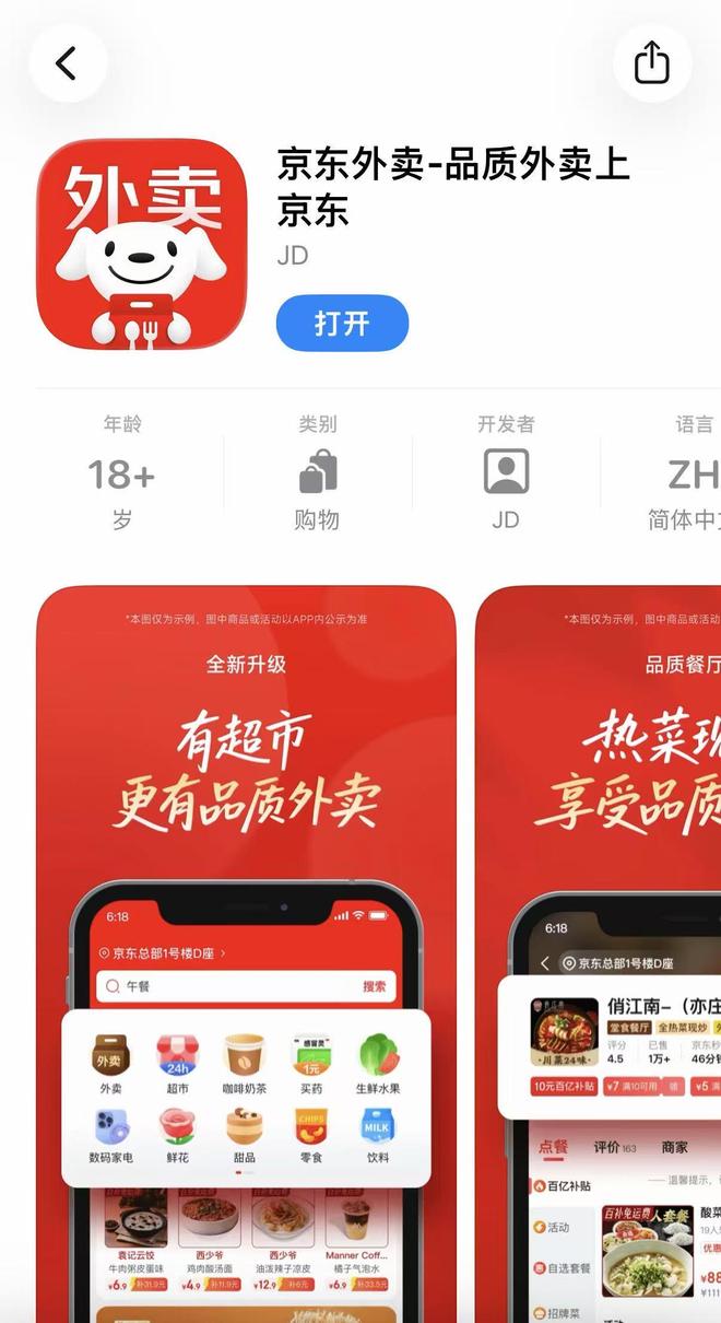 继上线安卓应用市场后,京东外卖 APP 也在苹果 App Store 上架了。