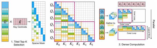 最后,一个高效的后处理步骤将以查询为中心的索引重新格式化为以键块为中心的变长布局,以便进行主注意力传递。整个流水线在批次和注意力头之间完全并行化,消除了原始的性能瓶颈。