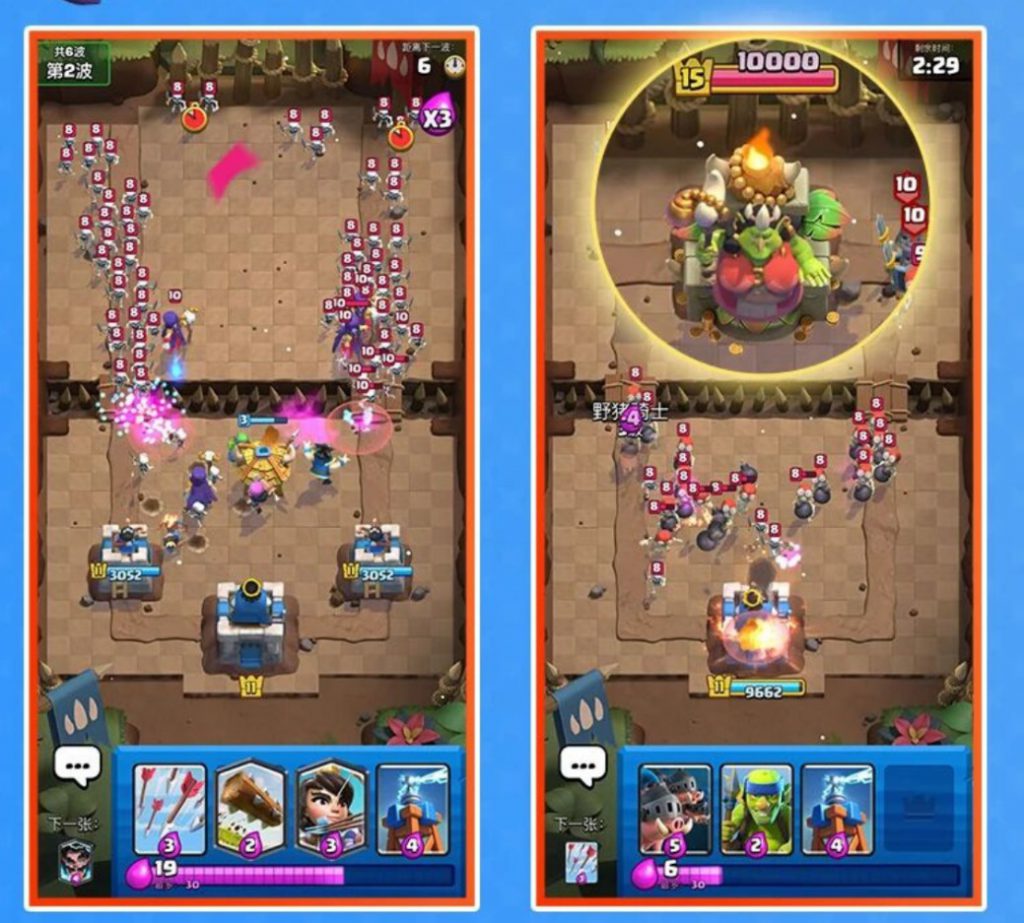 比如《荒野乱斗》的创新尝试——在“Party3”的玩法中融入“肉鸽”元素,进一步丰富了核心玩法中的随机变化和乐趣性,也强化了玩家之间的协作;《皇室战争》8 月为国服玩家推出的“保卫国王”玩法……以玩法创新贴近中国玩家的社交节奏与对抗偏好。