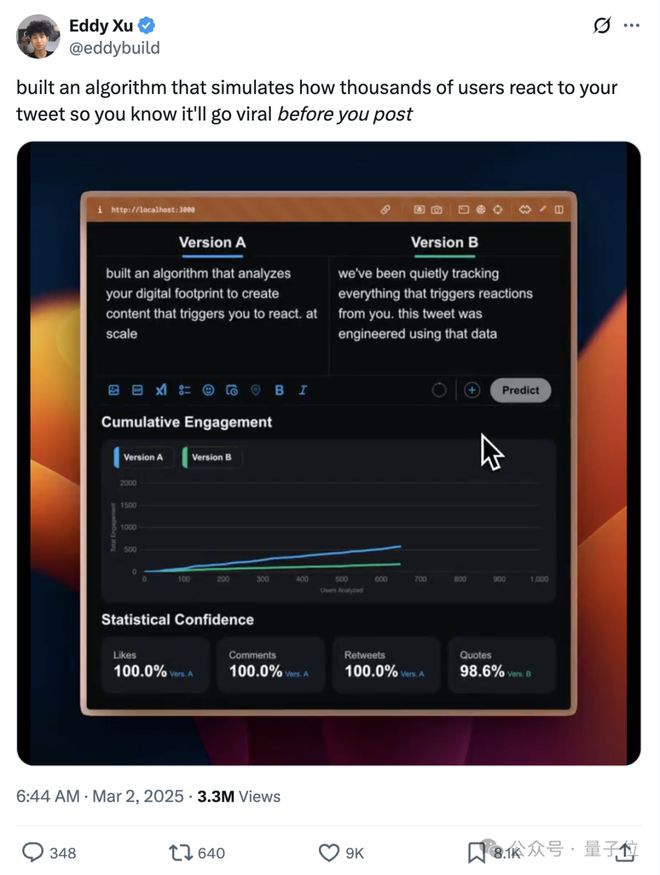 简单来说,CrowdTest 通过套壳大模型,模拟成千上万名用户对即将发布的推文可能产生的反应(A/B测试),从而对流量进行预测。