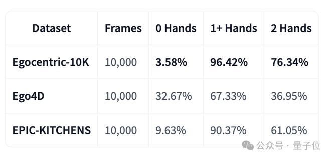 这使 Egocentric-10K 在手部可见性和主动操作密度方面达到了领先水平。